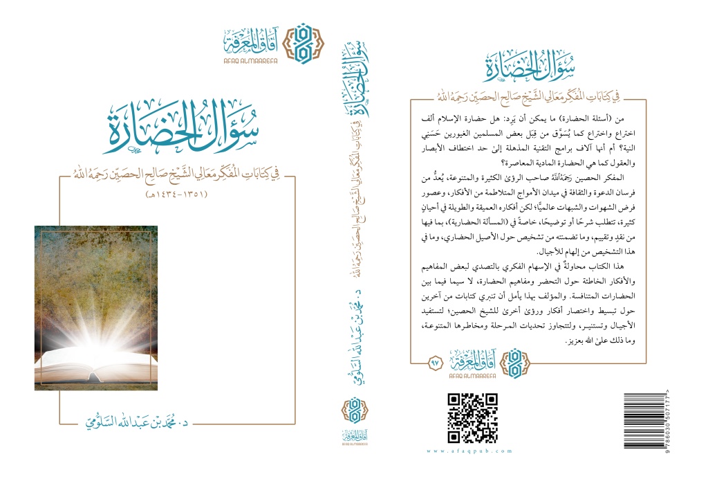 جاء هذا الكتاب بفصوله العشرة وموضوعاته المتنوعة، أنها عن أفكار متعددة تجمعها (مسألة الحضارة)، وأنها كذلك عن شخصية علمية فكرية متميزة، وهو المفكر معالي الشيخ صالح بن عبد الرحمن الحُصيِّن -رحمه الله-، الشخصية التي جمعت بين العلم والفِكر، ما يتطلب تقديمه عالمًا ومفكرًا على مستوى العالم، والعالم الإسلامي بصورةٍ خاصة. لقد تميَّز الحصين برؤى فكرية مفيدة ومُلهِمة للأجيال في قضايا الأمة المعاصرة مما تحتاج إليه الساحات الثقافية والفكرية.