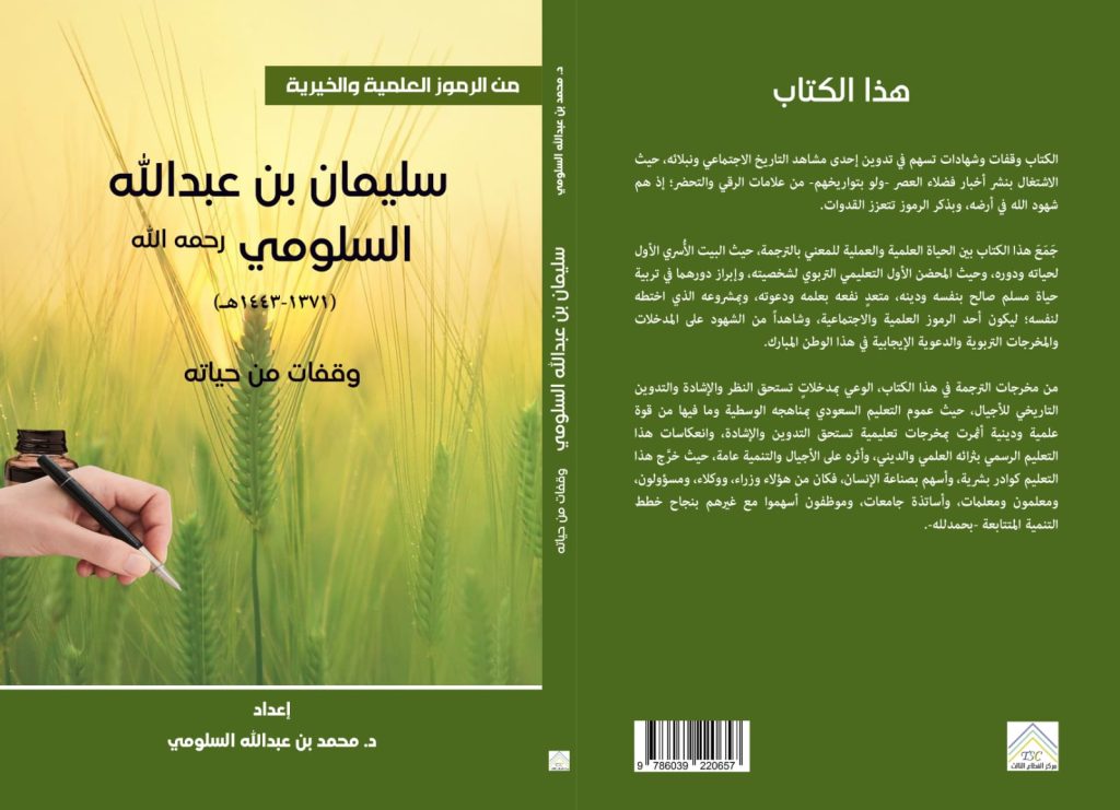 جاء هذا الكتاب بترجمة شخصية علمية معنية بالدكتور سليمان بن عبدالله السلومي -رحمه الله- (1371-1443هـ)، الأستاذ سابقاً في جامعة أم القرى بمكة المكرمة، وهو واحد من القدوات العلمية في الجانب العلمي والدعوي. جَمَعَ هذا الكتاب بين الحياة العلمية والعملية للمعني بالترجمة، حيث البيت الأُسري الأول لحياته ودوره، وحيث المحضن الأول التعليمي التربوي لشخصيته، وإبراز دورهما في تربية حياة مسلم صالح بنفسه ودينه، متعدٍ نفعه بعلمه ودعوته، وبمشروعه الذي اختطه لنفسه؛ ليكون أحد الرموز العلمية والاجتماعية، وشاهداً من الشهود على المدخلات والمخرجات التربوية والدعوية الإيجابية في هذا الوطن المبارك.