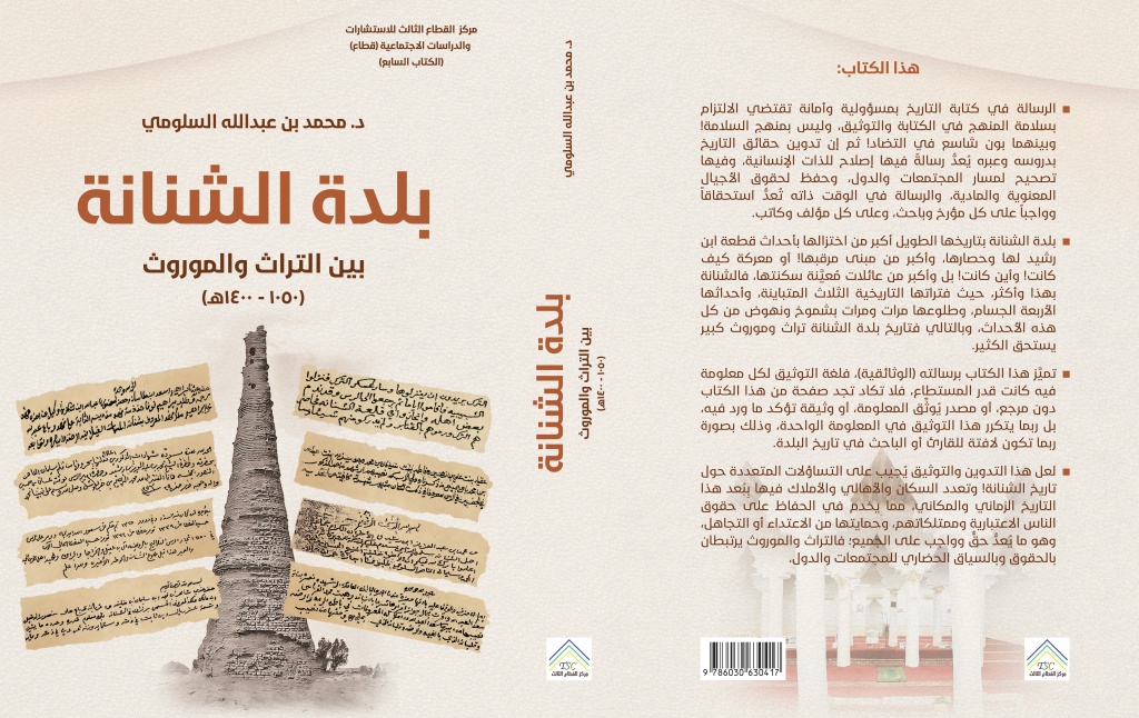 الشنانة بتراثها وموروثها الموضَّح كثير منه بهذا الكتاب وغيره من الكتب العلمية، يُعدُّ إرثاً حضارياً للوطن كله، وموروثاً مجتمعياً للجميع، فأحداثها التاريخية تُعدُّ تراثاً يستحق الاهتمام والتدوين أكثر من ذي قبل، بعيداً عن مفاهيم الميراث والمواريث، ليكون تراثاً من الجميع، وموروثاً للجميع، بل إن تاريخ بلدة الشنانة الكبير وأحداثها المتعددة، مما يستوجب المرافعة العلمية بوضوح عن هذا التراث والموروث العام بالمقال والكتاب!